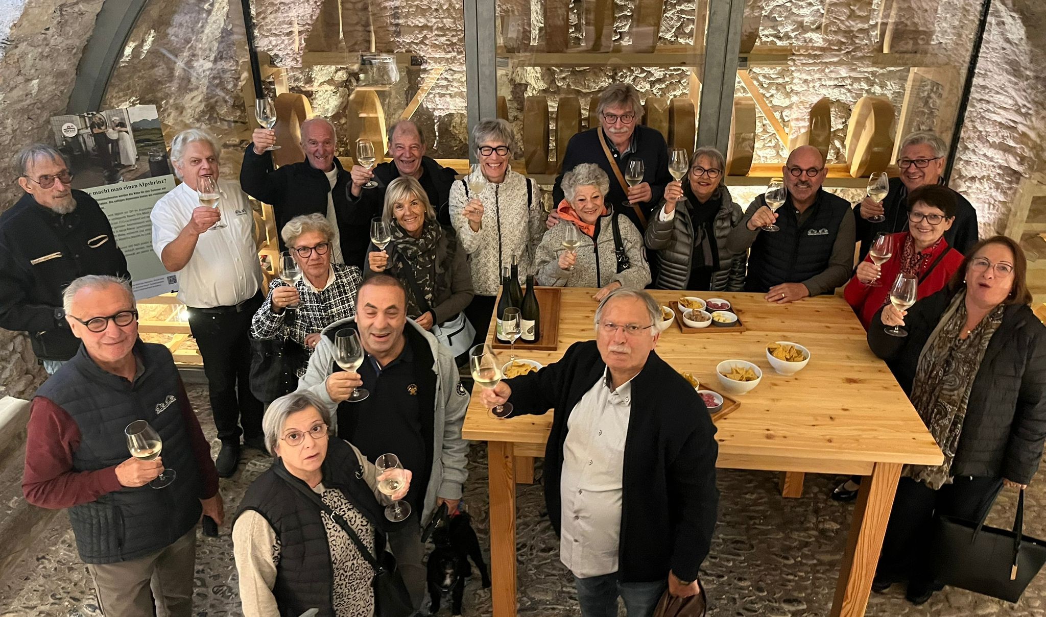 Zufriedene Mitglieder beim Apero während dem Herbstweekend 2025.